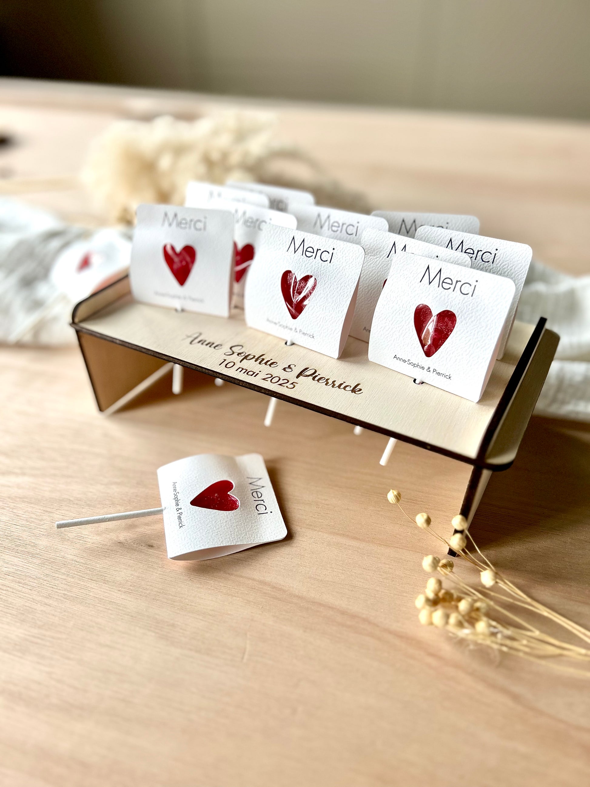 Transformez vos événements en moments inoubliables avec notre présentoir personnalisé en bois pour 10 sucettes !