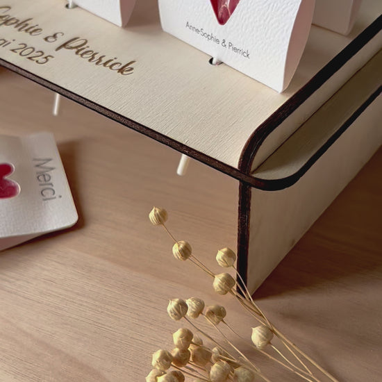 Idéal pour les mariages, baptêmes, anniversaires et autres célébrations, notre support en bois crée un bar à sucettes unique qui émerveillera vos invités. Grâce à l’option de gravure personnalisée, vous pouvez ajouter un message spécial, un nom, ou une date importante pour rendre votre décoration encore plus personnelle et mémorable.