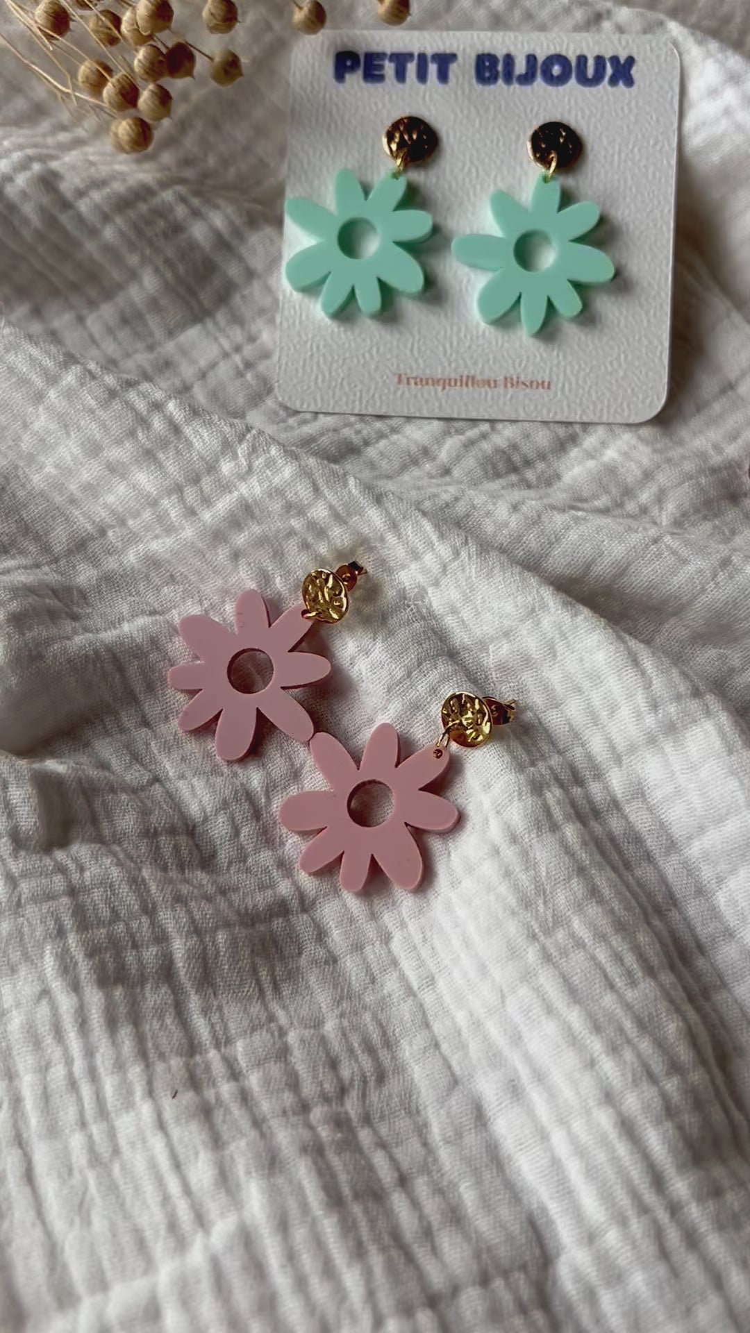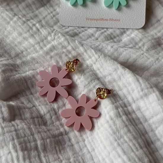 Boucles d’oreilles en acrylique et acier inoxydable – Couleurs printanières et design unique